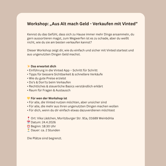 Event 24. April • Vinted Workshop – Verkaufen lernen und Geld verdienen