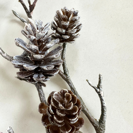 Kunstblume - Zweig mit Zapfen - beschneit