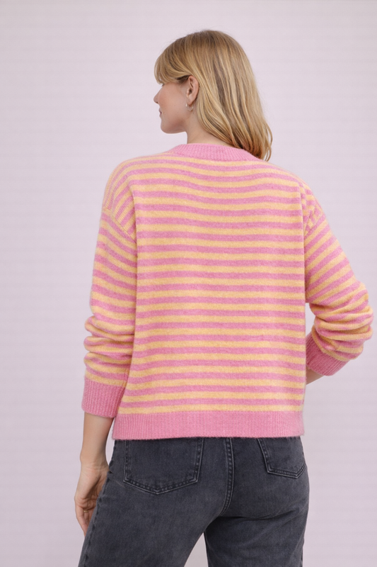 Damen Oversize-Cardigan mit Streifen – Orange-Fuchsia