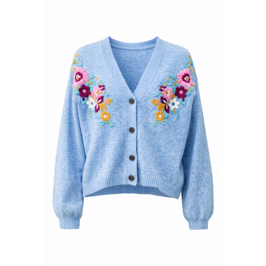 Strickjacke - FLEURS - bestickt mit Blumen – blau