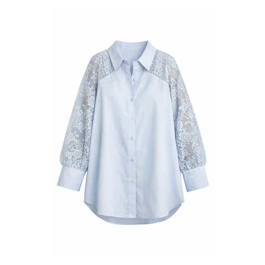 Satinhemd mit Spitze - hellblau