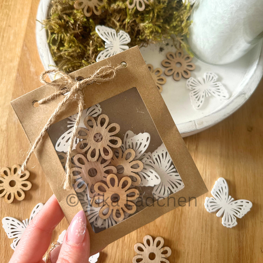 Streudeko - Frühling - Holz braun-weiß