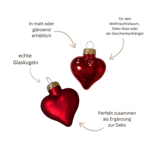 Mini-Weihnachtskugeln - Herz - rot - matt oder glänzend