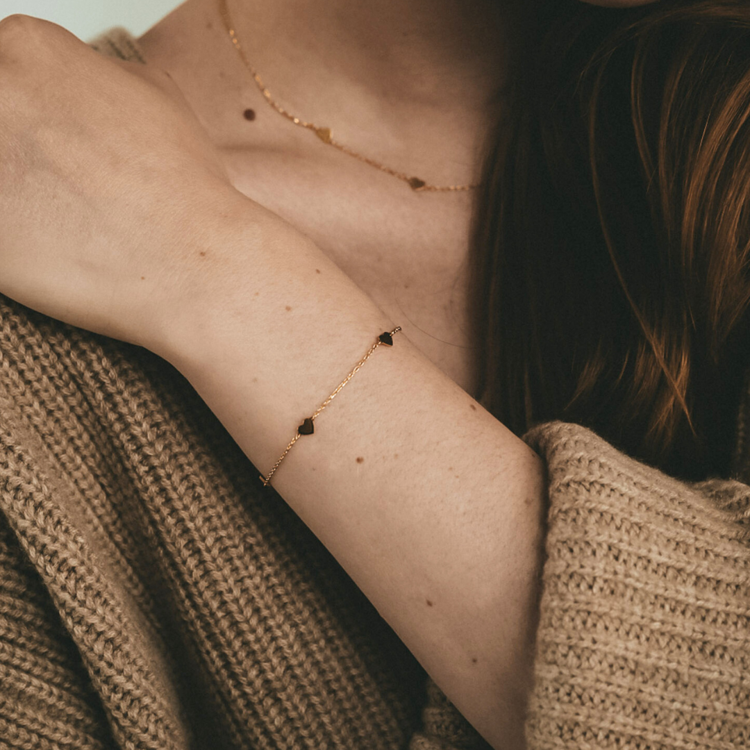 Dein neues Lieblingsarmband - Armband Lisa Gold - zieren kleine goldene Herzchen. Schlicht, einfach und ästhetisch reihen sich die Herzen an einer sehr feinen und filigranen Kette. Das Armband ist längenverstellbar und kann so je nach Outfit in der Länge angepasst werden! Perfekt für jeden Tag und doch auch ein Hingucker für besondere Anlässe! Das perfekte Geschenk um Liebe zu verschenken!