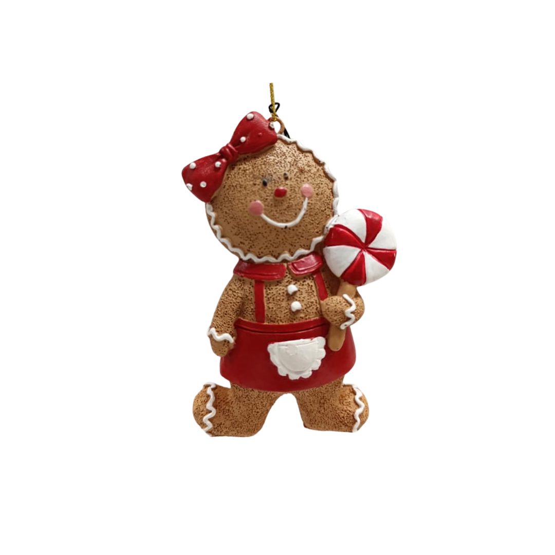 Versüße deine Weihnachtsdeko mit diesem niedlichen Dekoanhänger in Lebkuchenfrau-Form. Der kleine Mann hält eine bunte Zuckerstange und verbreitet sofort festliche Stimmung. Hergestellt aus robustem Polyresin, überzeugt er durch liebevolle Details und ein charmantes Design. Perfekt, um Kränze, Dekoleisten, Gardinenstangen oder stabile Zweige deines Tannenbaums zu schmücken.