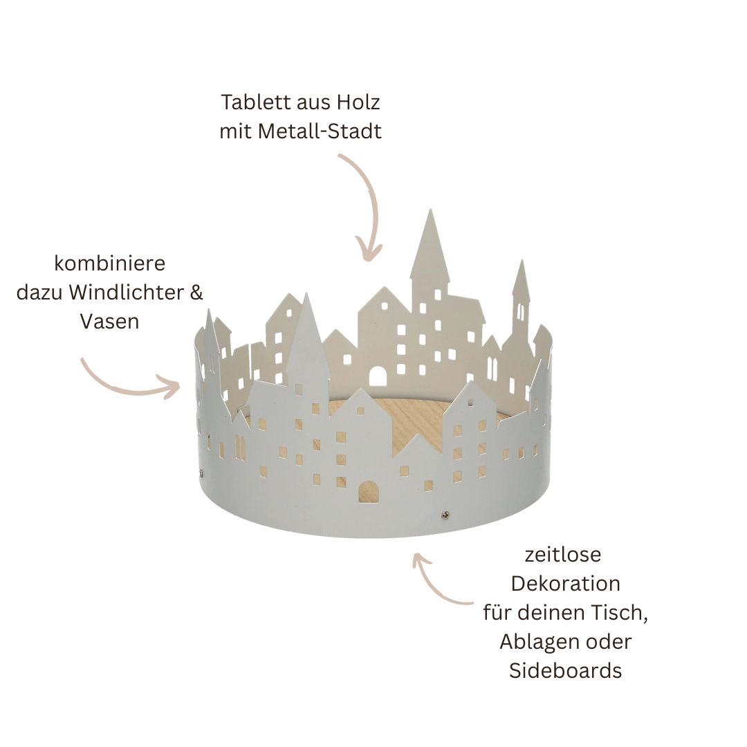 Das Tablett mit Häuserkulisse setzt jedes Arrangement perfekt in Szene und sorgt für Gemütlichkeit im Handumdrehen.