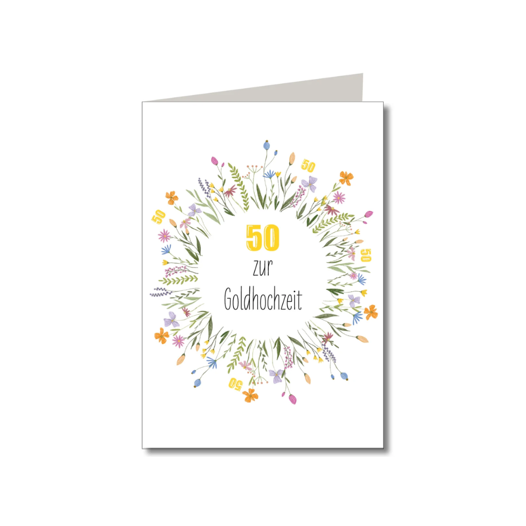 Klappkarte zur goldenen Hochzeit - stilvoll und dezent blumig