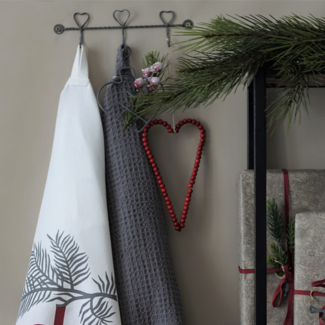 Diese schlichte Hakenleiste aus Draht verbindet Funktionalität mit liebevollem Design. Die drei kleinen Herzformenverleihen ihr eine warme, persönliche Note und machen sie zu einem dekorativen Element für Wand und Raum – ganz ohne aufdringlich zu wirken.