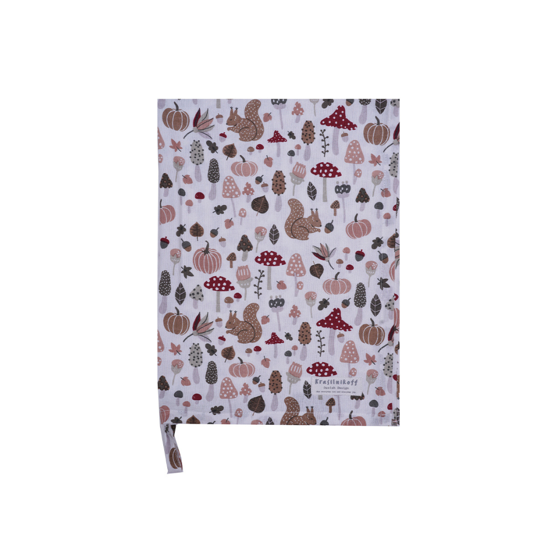 Mit dem Geschirrtuch „Autumn Rose“ von Krasilnikoff bringst du gemütliche Herbststimmung in deine Küche. Das Design zeigt liebevoll illustrierte Kürbisse, Pilze, Blätter und kleine Waldtiere in warmen Rosé-, Braun- und Bordeaux-Tönen – perfekt für die Herbstzeit, aber auch als dekorativer Akzent das ganze Jahr über.