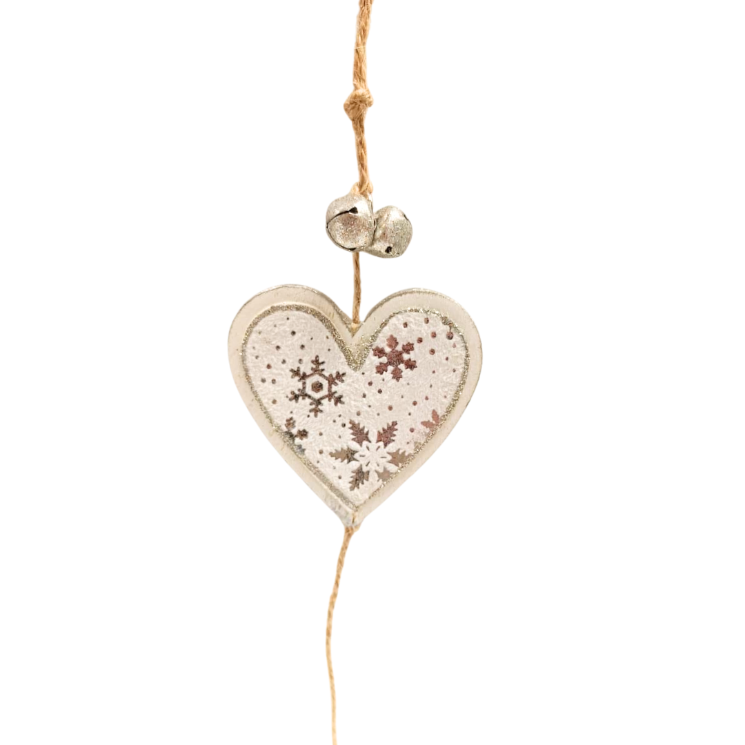 Girlande aus Holz mit Glocken und Herzen mit Schneeflocken