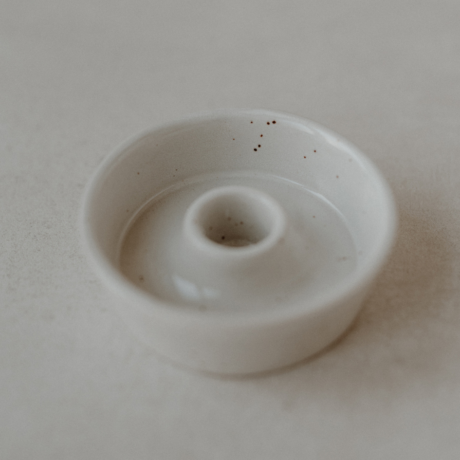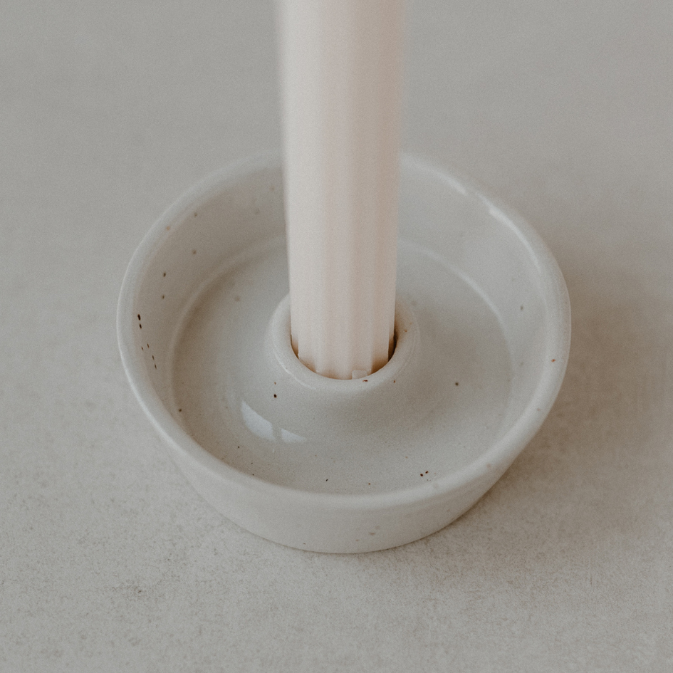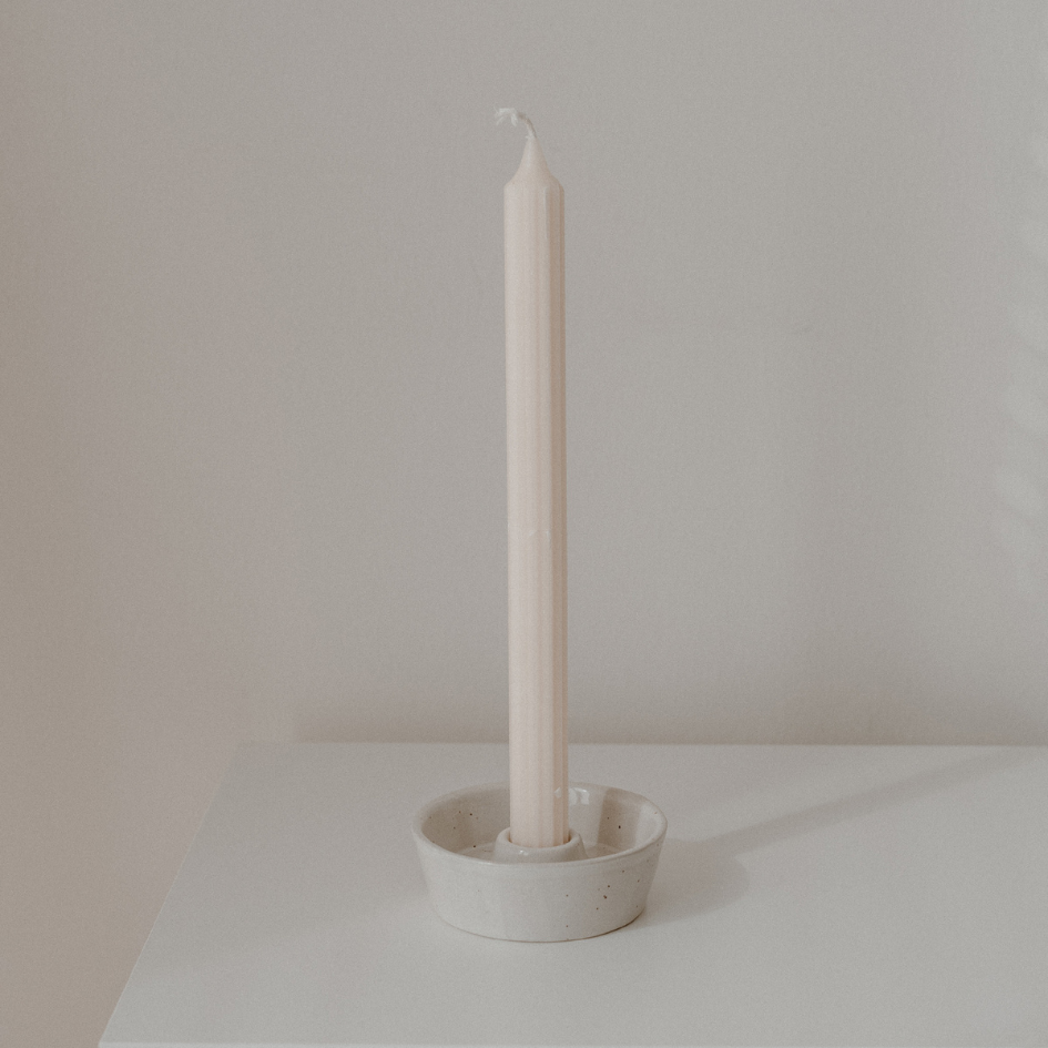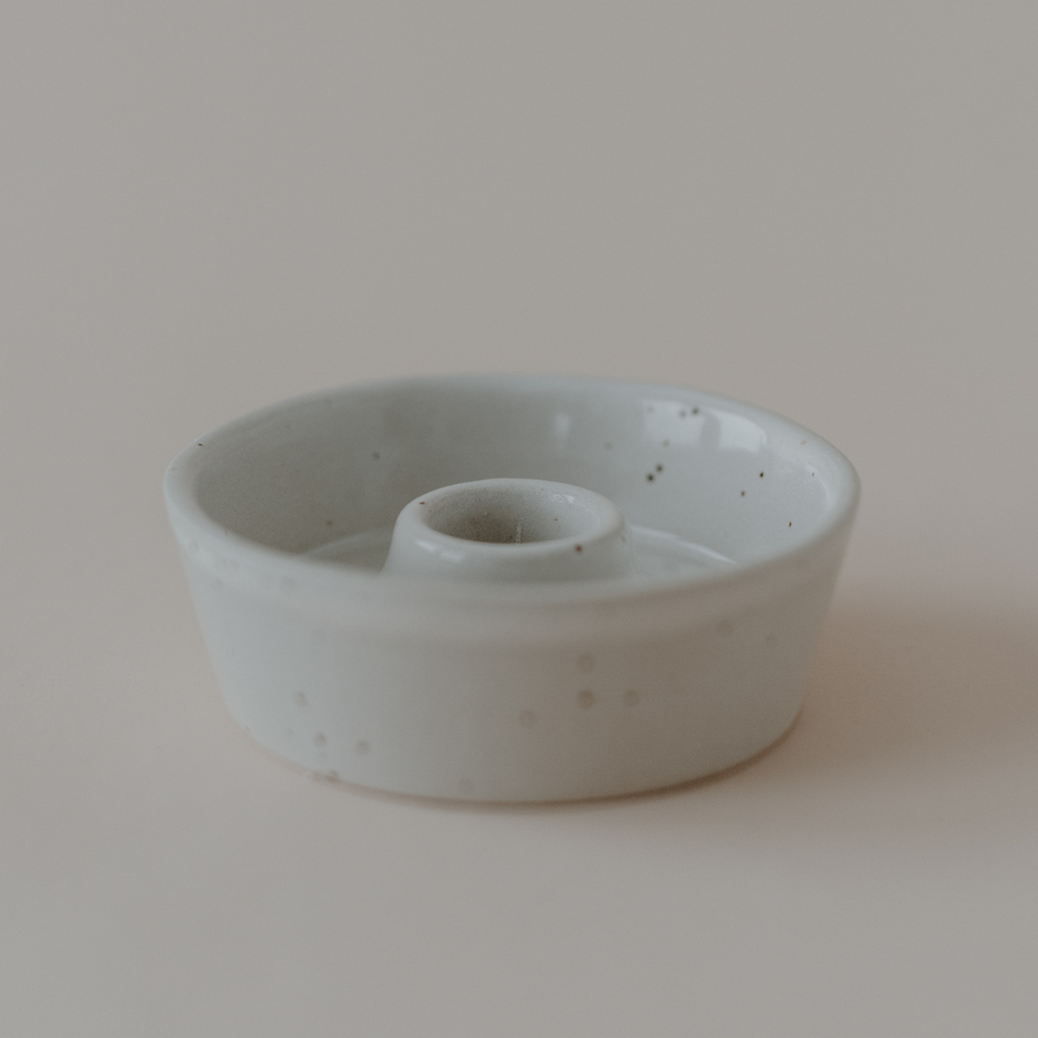 Kerzenschale aus Steingut - Creme-Beige von Eulenschnitt