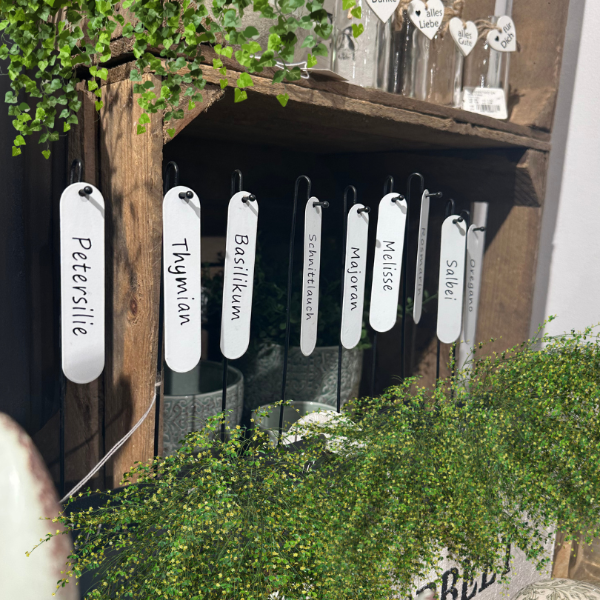 Ein schöner, moderner Dekoartikel für echte Gartenfans! Diese kleinen Kräuterstecker sind nicht nur praktisch, sondern auch stylisch! Sie sind schlicht gehalten und passen somit zu jedem Stil! Nutze die Kräuterstecker jedes Jahr wieder zur Kennzeichnung deiner Kräuter im Beet. Erhältlich als Set zum Sonderpreis oder einzeln.