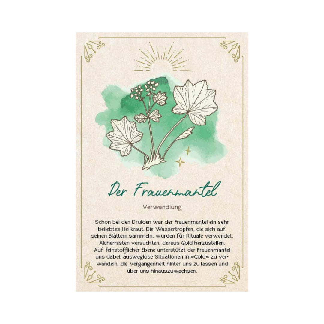 Lass dir von der alten, weisen Eiche mit raschelnden Blättern einen Rat ins Ohr flüstern oder tauche mit dem Lavendelin ein Universum voller Liebe, Ruhe und Träume ein. Jede Karte ist vierfarbig illustriert und öffnet dir den Zugang zur tiefen Symbolik der Natur.