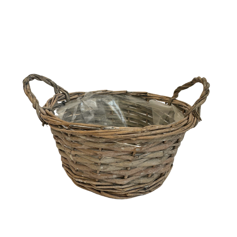 Kleiner Pflanzkorb aus Weide, perfekt für deine Gestecke oder Pflanzschalen für den Garten, Balkon oder zum Verschenken. Nimm einfach die Folie heraus und nutze den Korb als Brotkorb oder für Krimskrams.