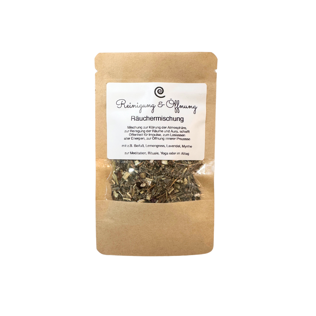 Diese Räuchermischung „Reinigung & Öffnung“ wurde sorgfältig zusammengestellt, um Räume, Gedanken und Energien zu klären. Sie unterstützt dich dabei, alte Belastungen loszulassen, neue Impulse zuzulassen und eine ruhige, offene Atmosphäre zu schaffen – ideal für bewusste Pausen im Alltag.