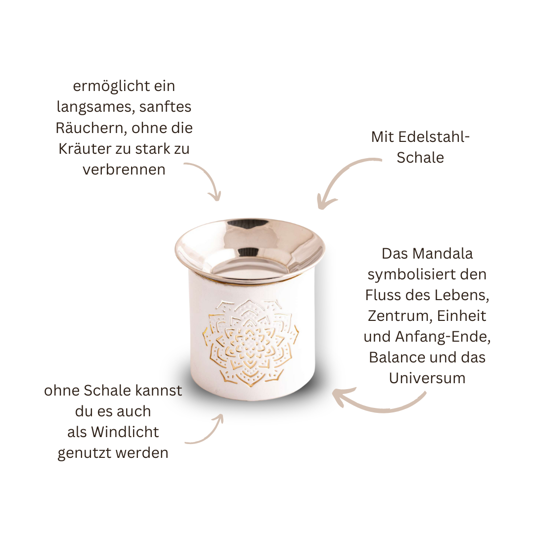 Der Mandala steht für Universum, Balance, Ganzheit, Anfang & Ende, Weg nach Innen, Zentrum & Einheit. Ein kraftvolles Symbol – ideal für Räucherrituale, Meditation oder bewusstes Abschalten.
