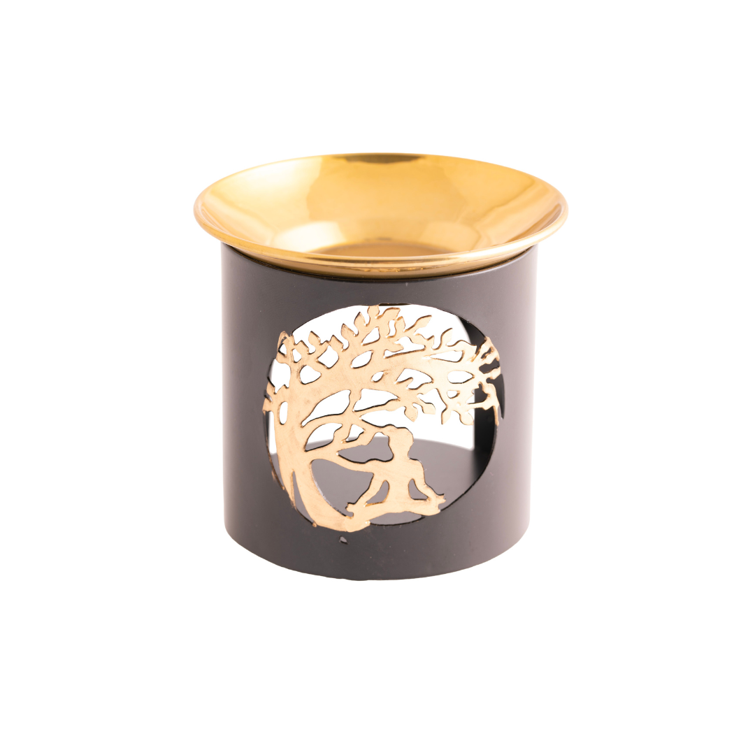 Dieses Stövchen ist die perfekte sanfte Methode, deine lose Räucherware zu verräuchern. Unten ein Teelicht und oben in der Schale kannst du deine Kräuter verglimmen. Die Schale ermöglicht ein ganz sanftes Räuchern und gibt die Düfte leicht an die Atmosphäre. Innen ist das Stövchen gold, was für die Fülle steht. Das Motiv "Lebensbaum und Buddhi" steht für den Fluss des Lebens und dich selbst - es darf eine Erinnerung an dich selbst sein, dass du dir immer wichtig sein darfst. Das Stövchen kannst du ohne Schale auch als Windlicht nutzen.