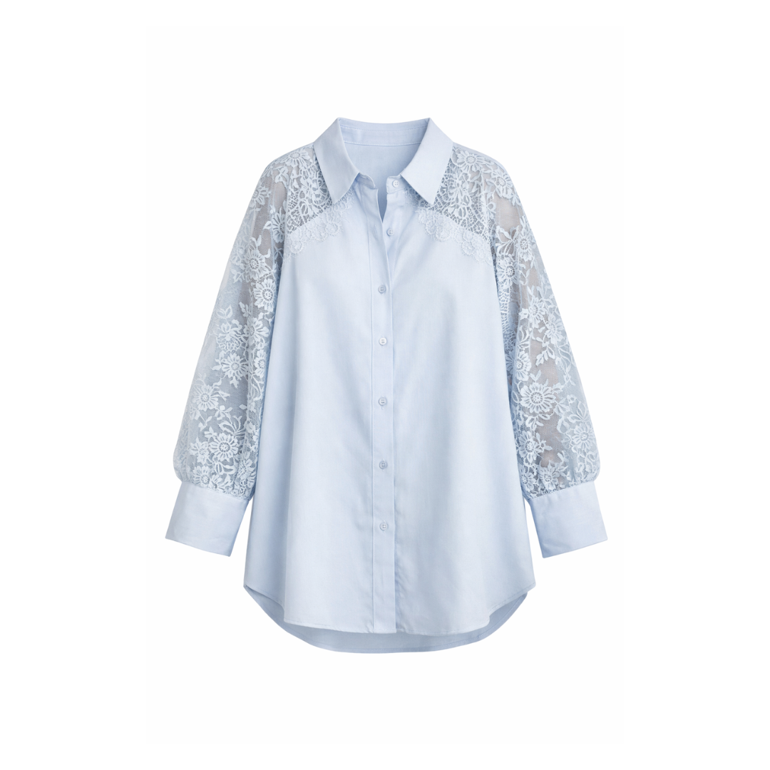 Satinbluse mit Spitze – elegante Damenbluse in Hellblau