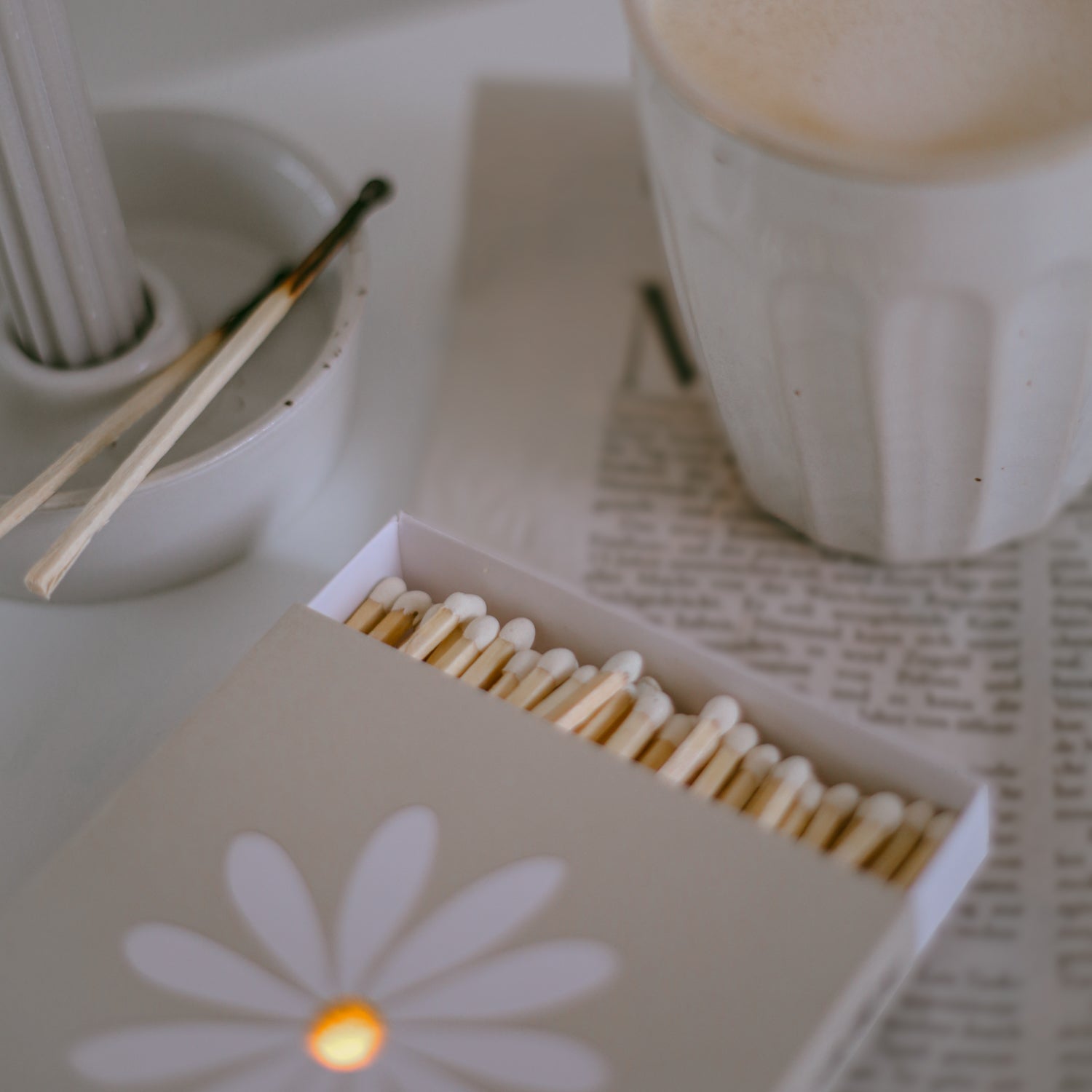 Es sind die kleinen Dinge im Leben, die uns am meisten Freude bereiten können! Ein ganz unscheinbarer Alltagsgegenstand, aufgemacht in einem wundervollen Design: die Streichhölzer von Eulenschnitt! Egal ob als Geschenk oder für dich selbst, so schlicht und edel wertet es jede Dekoration auf. So werden die kleinen, so selbstverständlichen Dinge im Alltag ganz besonders aufgehübscht! Ein sehr schönes Präsent passend zu einer Kerze, als kleines nützliches Giveaway oder für zwischendurch. Dekoriert auf dem Tisch sind diese Streichhölzer auch wunderbar. Ein Produkt mit schöner Aufschrift, Look und Goldprägung!