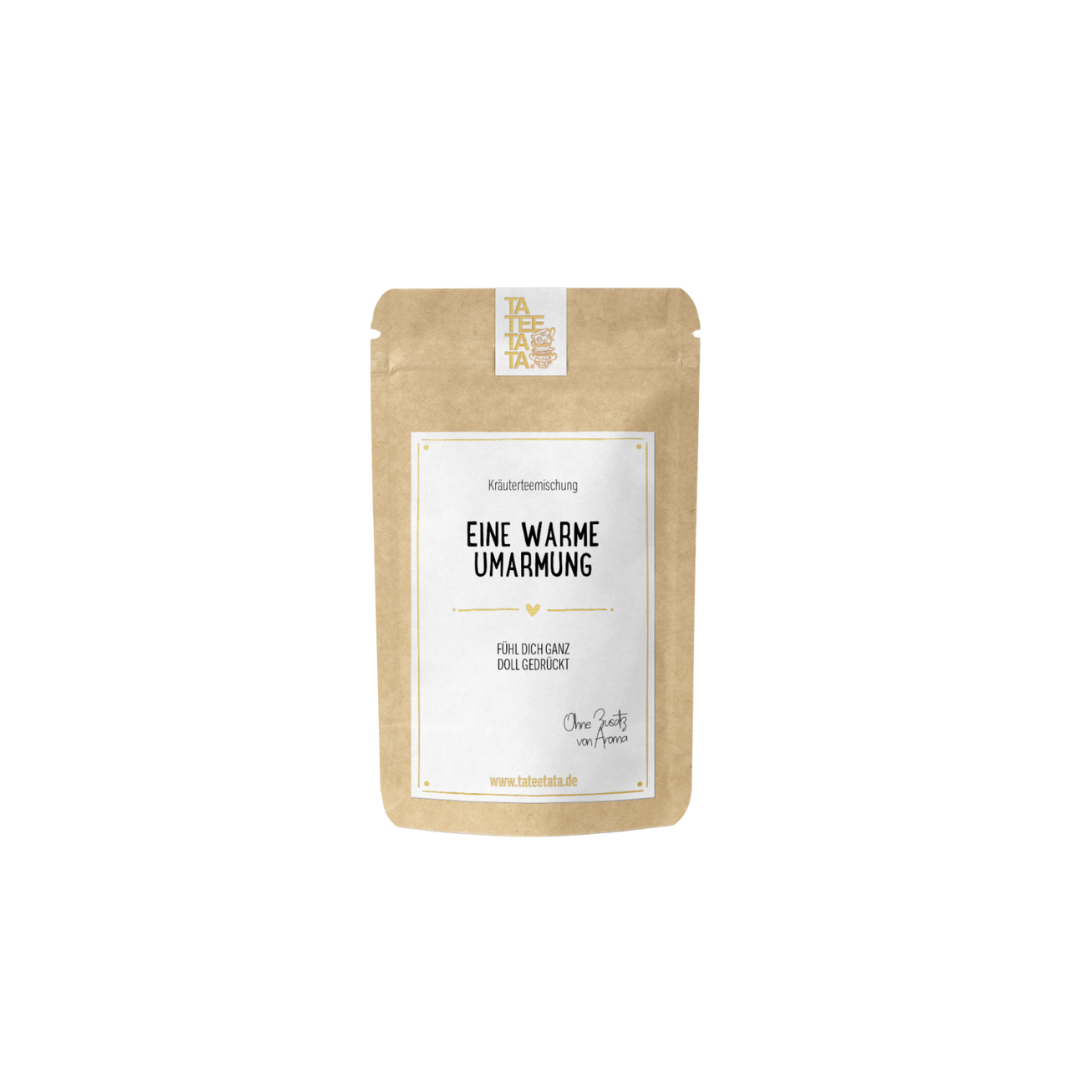 Verschenke eine warme Umarmung als Tee - ein Gefühl der Geborgenheit für Zuhause die auch von innen wärmt. Dieser leckere , wohltuende Tee von TaTeeTaTa ist die perfekte kleine Aufmerksamkeit für Zwischendurch. Der Tee ist perfekt als kleine Geste, die von Herzen kommt und tief im Inneren berührt. Die ayurvedische Rezeptur wirkt durch und durch erwärmend und herzergreifend. Glutenfrei, vegan und in edlem Natur-Design verpackt, ist dieser Tee ein stilvolles Geschenk für Freunde, Familie oder Kollegen.