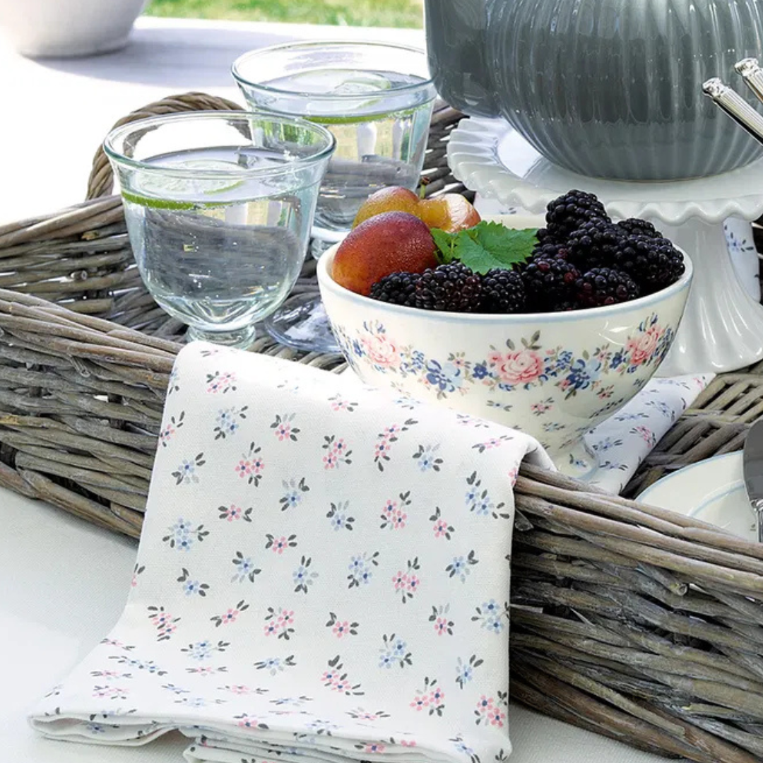 Verleihe deinem Tisch eine liebevolle, harmonische Atmosphäre mit der GreenGate Tischdecke mit Streublumen. Das zarte, verspielte Design sorgt für Leichtigkeit und Freude und lässt sich wunderbar mit verschiedenen Wohnstilen kombinieren – ob Landhaus, skandinavisch oder modern. Die Tischdecke aus 100 % Baumwolle bringt mit ihren feinen Blütenmustern Farbe und Lebensfreude in dein Zuhause und macht jeden gedeckten Tisch zu einem echten Blickfang.
