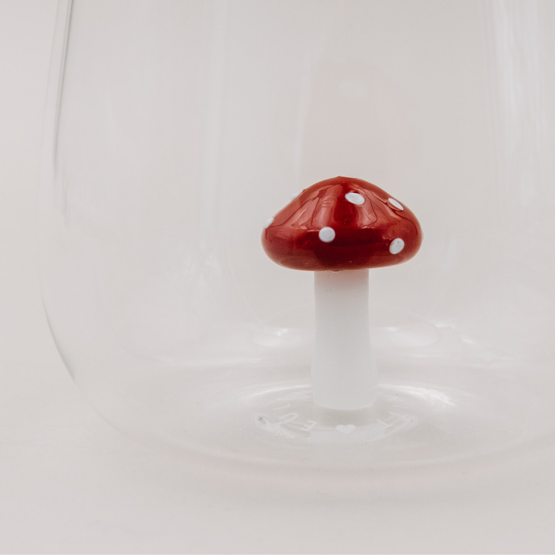 Das Pilzmotiv steht seit jeher für Intuition, Wachstum, Verbindung zur Natur und die Magie des Verborgenen. In vielen Kulturen gilt der Pilz als Symbol für Lebensfreude, Wandlung und innere Kraft – tief verwurzelt in der Erde und doch ein Tor zu neuen Perspektiven. Dieses Glas bringt genau diese Essenz in deine Hände und deinen Raum.