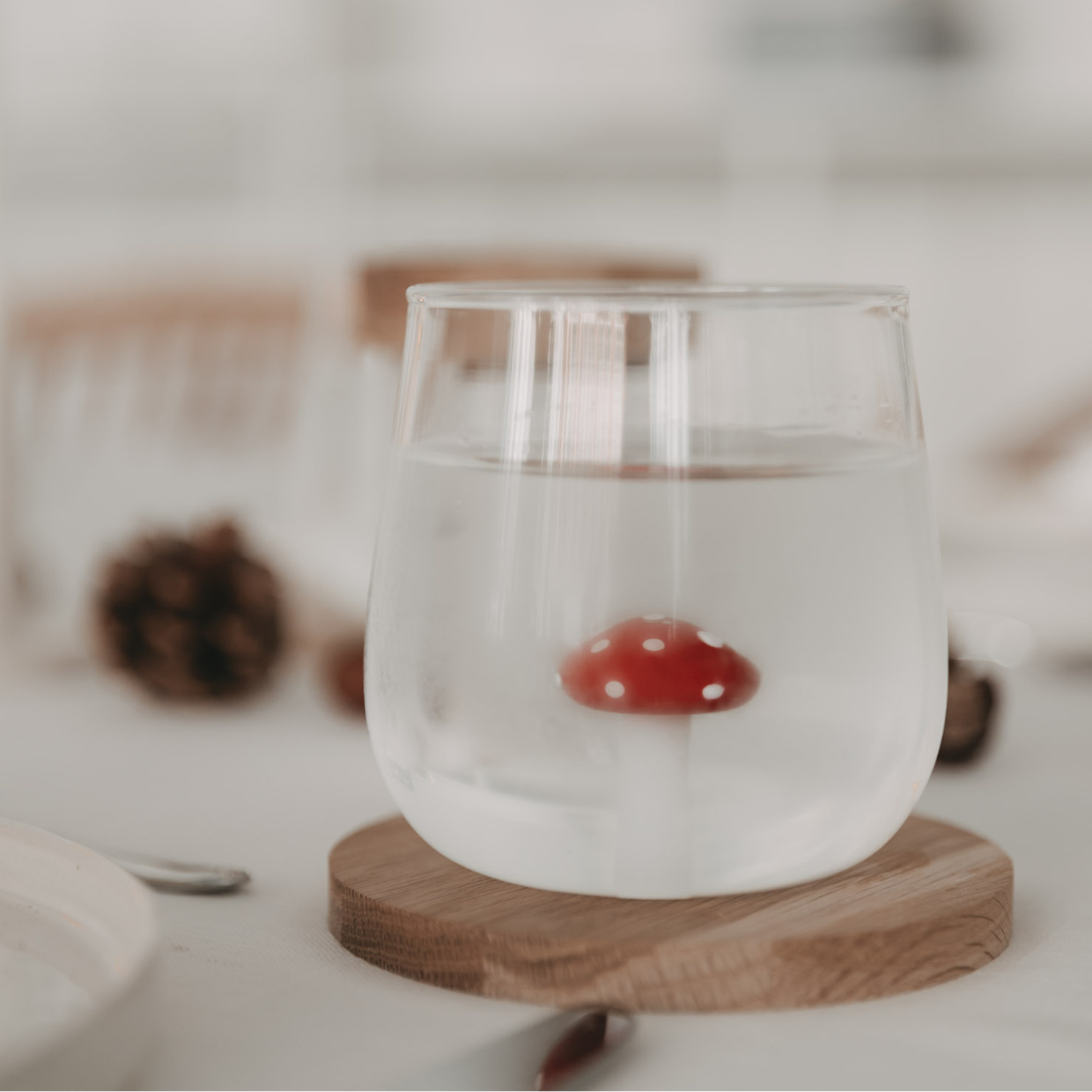 Dieses besondere Trinkglas mit Pilzfigur vereint Funktion und Bedeutung in einem Design, das inspiriert, berührt und den Alltag ein Stück magischer macht. Gefertigt mit klarer Formensprache, hochwertigem Glas und liebevollen Details, lädt dieses Glas nicht nur zum Trinken ein – es erzählt eine Geschichte.