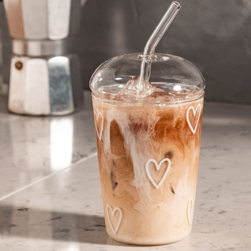 Die neuen höheren Trinkgläser von Eulenschnitt sind die perfekte Wahl für jegliche Getränkekreationen! Von erfrischenden Eistees bis hin zu kunstvollen Kaffeevariationen. Das Glas ist nicht nur hübsch verziehrt mit lieblichen weißen Herzen, sondern auch äußerst praktisch.