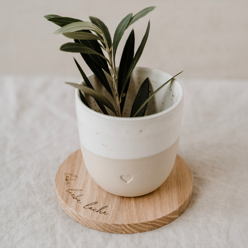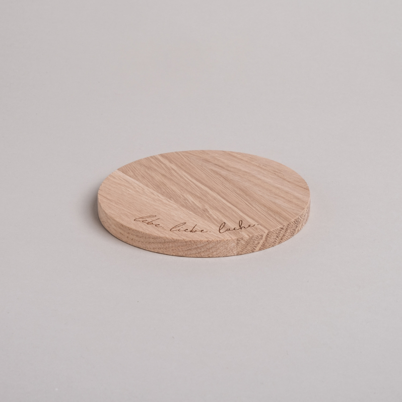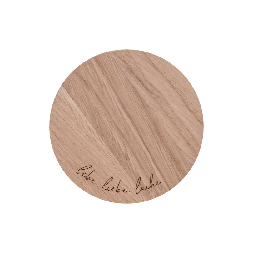 Dieser kleine Untersetzer verzaubert mit schlichter Ästhetik! Die formschöne Holzscheibe ist toll nutzbar für deine Lieblingsbecher und ein schöner Hingucker auf einer besonders gedeckten Tafel. Die Lasergravur zaubert ein Lächeln und erinnert an die schönen Momente im Leben und das was wichtig ist: Lebe, Liebe und Lache! Schaffe ein stilvolles Ambiente auf dem gedeckten Tisch oder einen Blickfang an deinem Lieblingsort. Auch sehr schön als Geschenk, vielleicht in Kombination mit unseren Bechern?