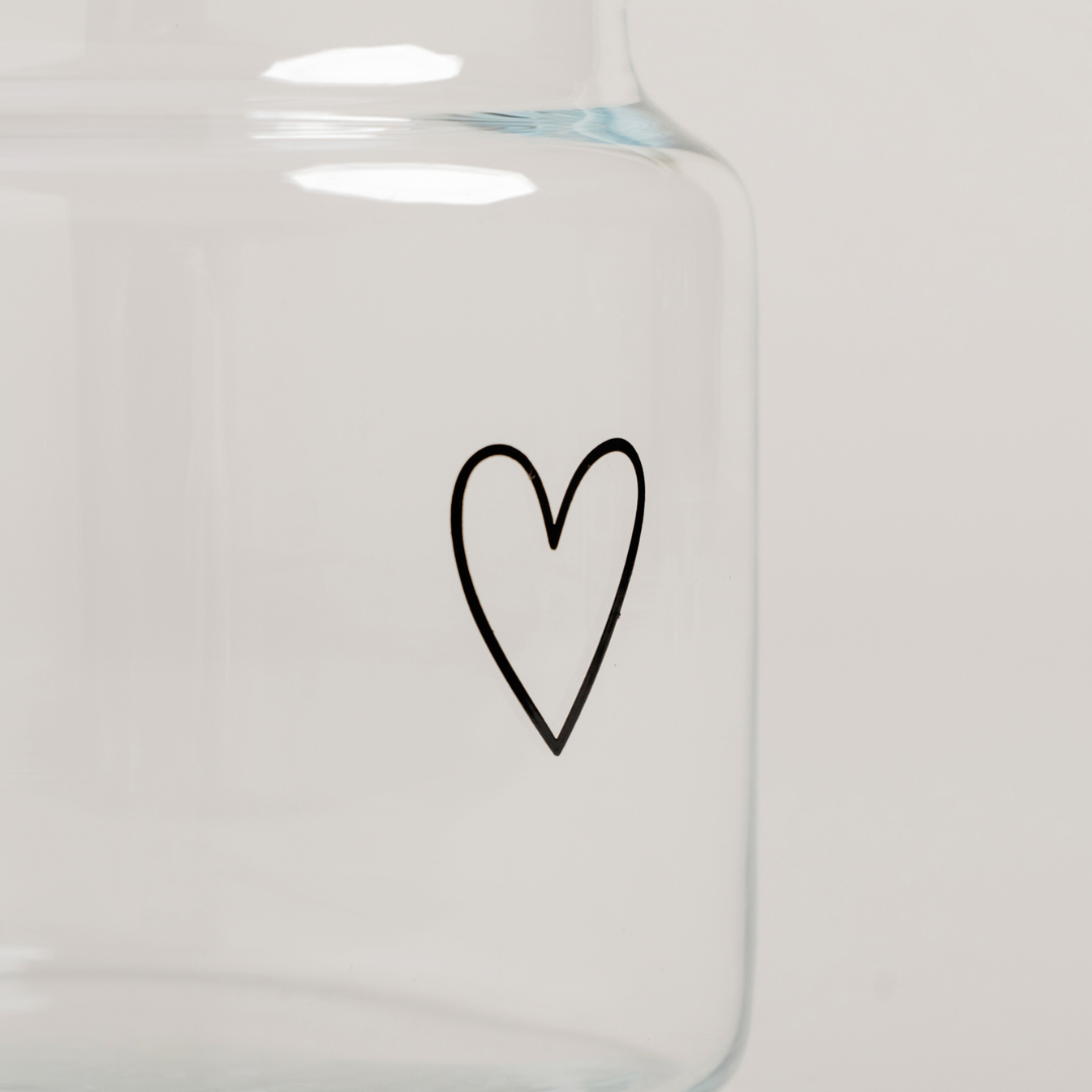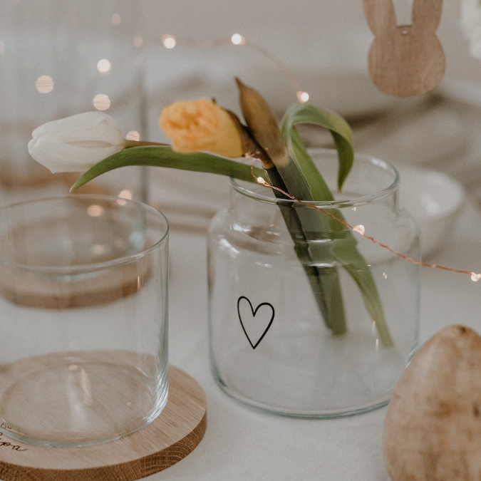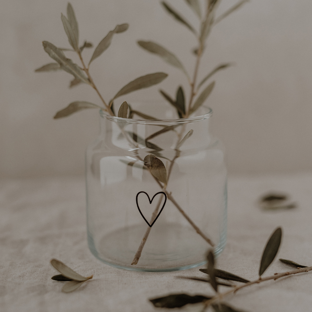 Eines unserer Lieblingsprodukte ist die schlichte Glasvase von Eulenschnitt mit dem schwarzen Herz. Diese Vase fügt sich wundervoll in deine beständige Dekoration ein und zaubert eine herzliche Stimmung. Schlicht und dezent, ist sie ein schönes Geschenk oder eine schöne Dekoration auf deinem Tisch. Du kannst auch gern eine Kerze in dem Glas platzieren.