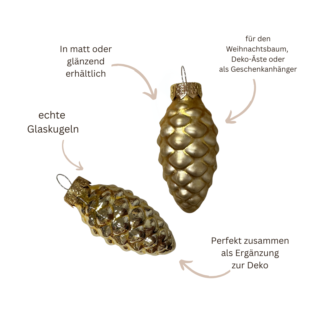 Mini-Weihnachtskugeln - Zapfen - Gold - matt oder glänzend