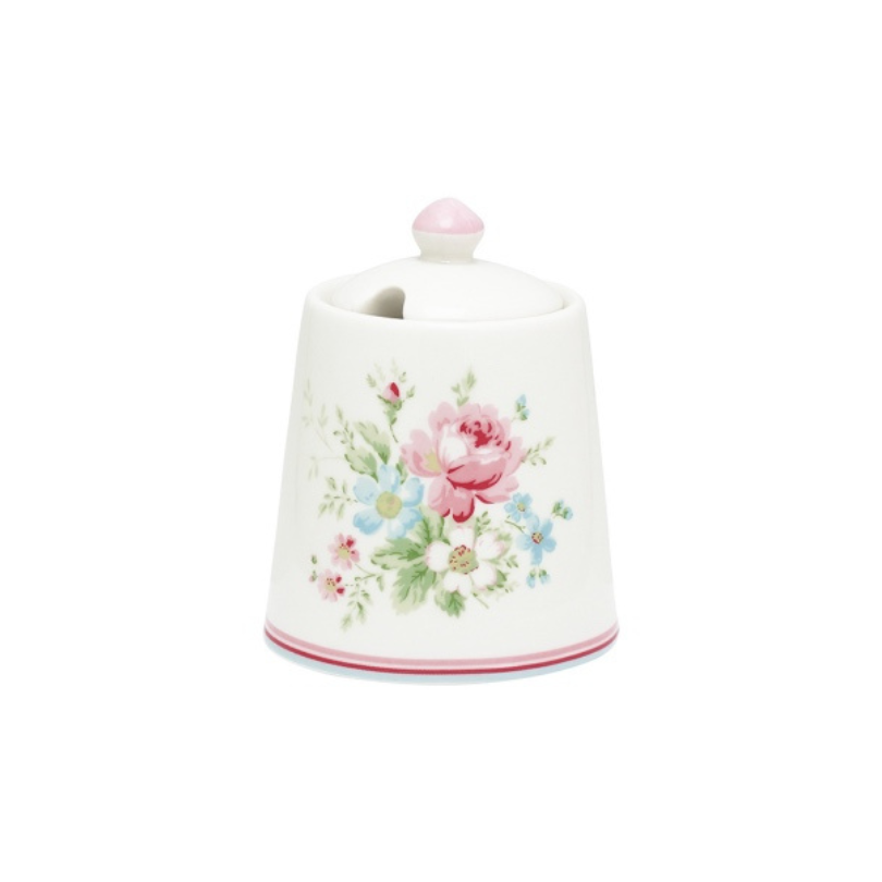 Ein echter Hingucker sind die formschönen Zuckerdosen von GreenGate. Eine perfekte Größe für deinen Zucker. Der Deckel hat ein kleines Loch für einen Löffel. Genieße den Anblick dieses besonderen kleinen Geschirrstückes auf dem Tisch oder an einem besonderen Platz zur Dekoration.